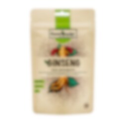 Ginsengpulver av den kända sorten Panax som är framställd av endast rötterna. Ginseng är känd som ”the root of life” och har sedan lång tid tillbaka använts som en naturlig källa till ökad energinivå. Ginseng är en adaptogen.