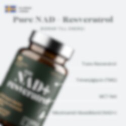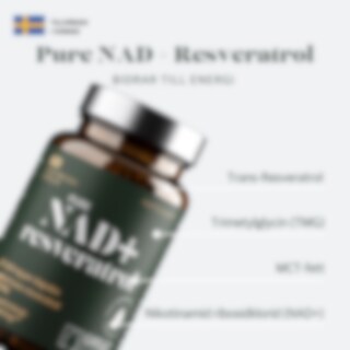 Pure NAD+ resveratrol innehåller nikotinamid ribosid (NR) som är en aktiv form av vitamin B3 och ett förstadium till nikotinamid adenin dinukleotid (NAD+) tillsammans med resveratrol i transform och TMG för optimalt upptag och effekt.
