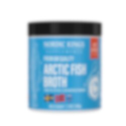 Nordic Kings Premium Arctic Fish Broth, fiskbuljong, är gjord av de absolut finaste MSC-certifierade råvarorna från orörda och kristallklara vatten i Norge. Köttet från 100% torsk torkas försiktigt och mals försiktigt till ett fint smakrikt och proteinrikt, hela 88% protein, fiskbuljongpulver. Nordic Kings Premium Arctic fiskbuljong innehåller absolut inga emulgeringsmedel som soja eller solroslecitin.