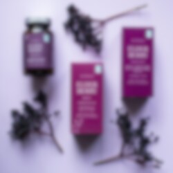 Elderberry Instant kan tas året om, inför säsong eller vid behov. Med god bärsmak och utan tillsatt socker. Endast sötad med naturlig xylitol. Veganskt certifierad av Djurens Rätt.
