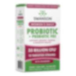 Women's Daily Probiotic + Prebiotic FOS från Swanson innehåller 35 miljarder probiotika från 15 olika stammar tillsammans med prebiotika som främjar tillväxten av goda bakterier och tranbär som stödjer urinvägarna.
