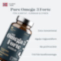Pure Omega-3 Algolja Forte från Great Essentials ger hela 750 milligram omega-3 per dagsdos, i triglyceridform, och är rik på de viktiga omega-3-fettsyrorna EPA och DHA. Fri från havsföroreningar med minimal miljöpåverkan. Ingen fiskig eftersmak.