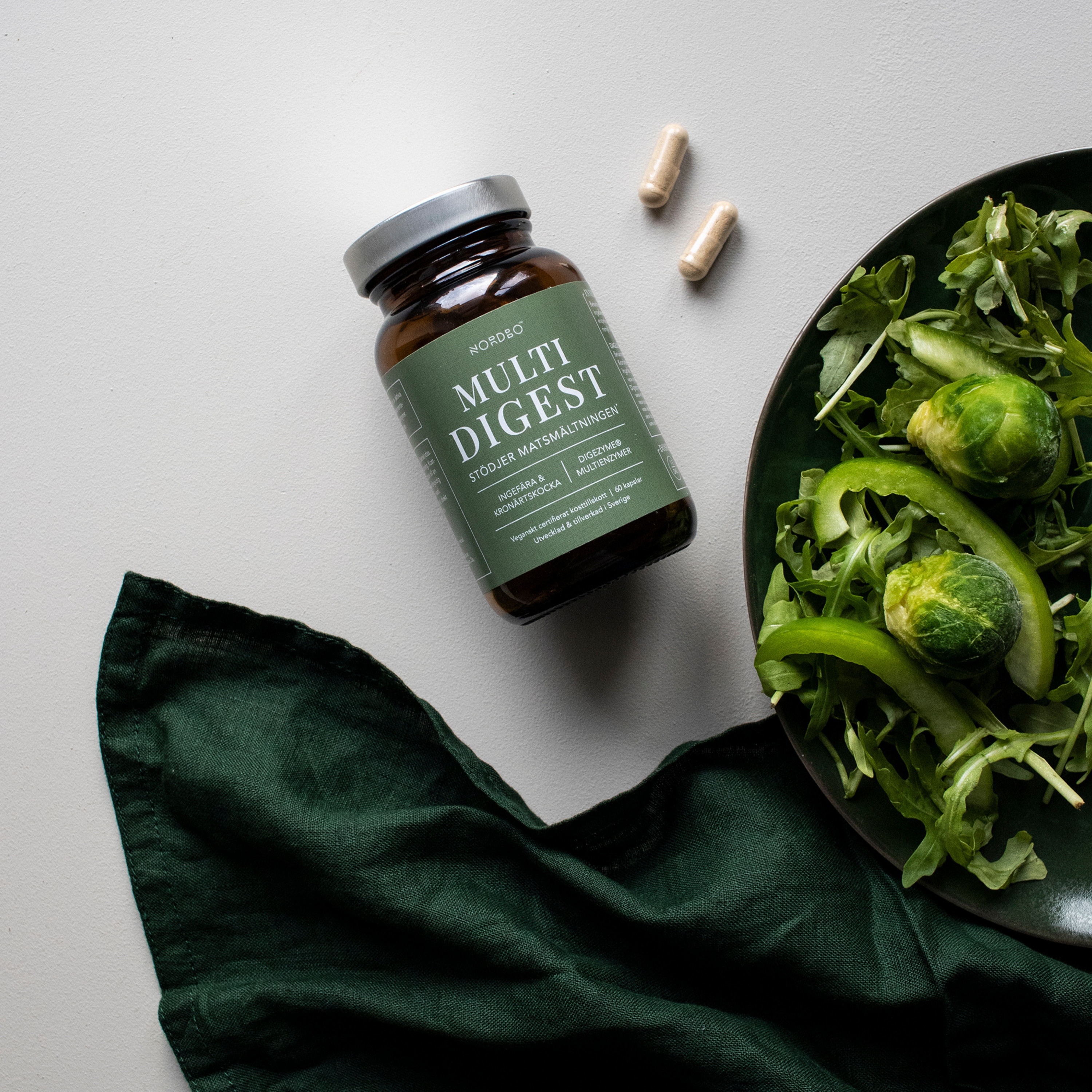Multi Digest kan användas vid behov eller vid samtliga måltider. Utvecklad och tillverkad i Sverige. Veganskt certifierad av Djurens Rätt.