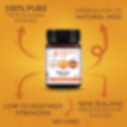 Manuka Lab Manukahonung MGO 525+. Helt naturlig Manukahonung från Nya Zeeland med en styrka om 525 MGO. MGO-märkt för att säkerställa renhet och kvalitet. Manuka Labs sortiment av Manukahonung skördas från avlägsna skogsmarker i Nya Zeeland, där det inhemska Mānukaträdet naturligt växer.