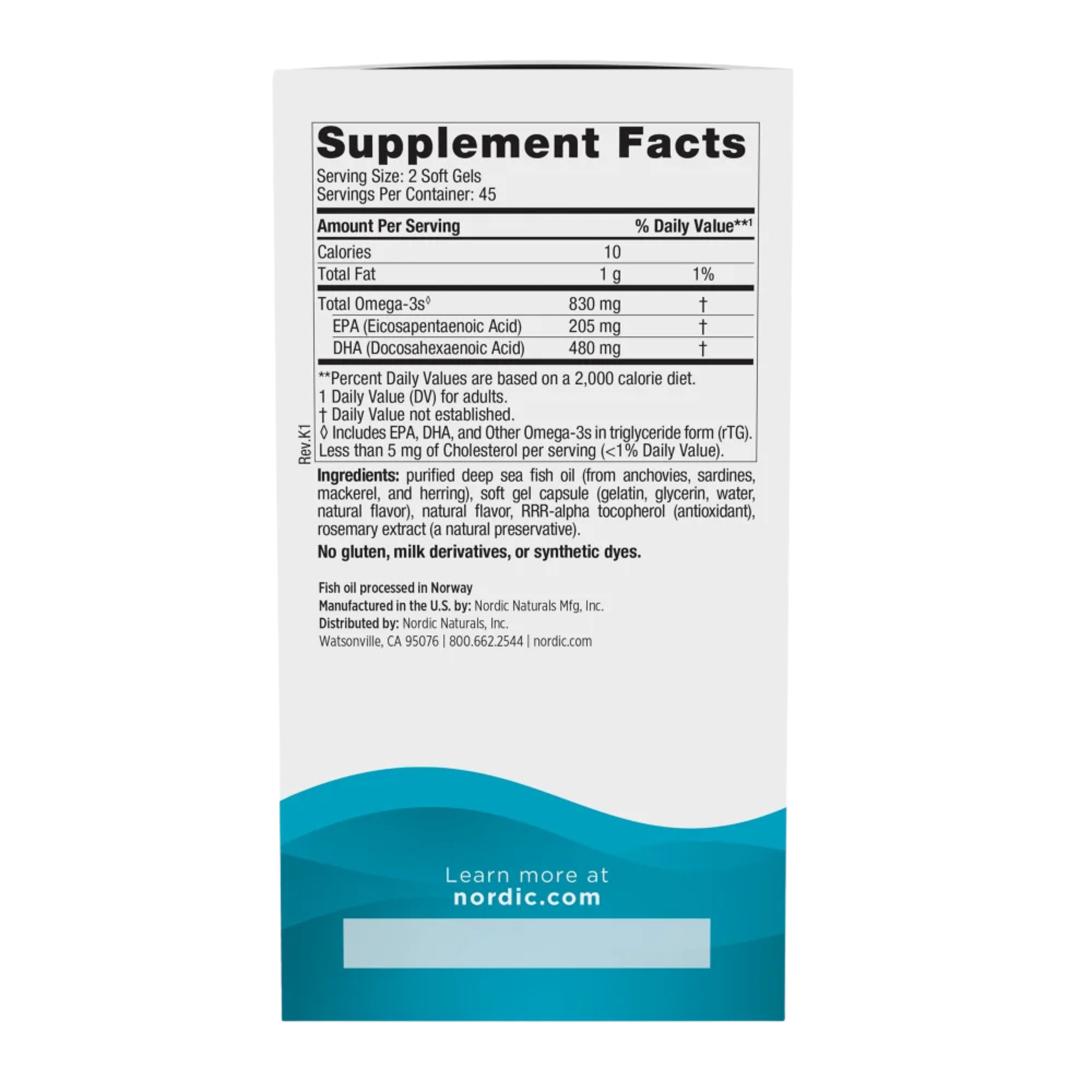 Nordic Naturals tillverkar all sin Omega-3 från vildfångad djuphavsfisk, från ansjovis och sardiner, i triglyceridform för att ge en bättre absorbtion. Nordic Naturals tillämpar de striktaste hållbarhetskraven och renhetskontroller genomförs på varje batch av tredjepart. Certifierat Friends of the Sea.
