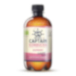 Frisk kombucha med smak av hallon. Bryggd i Portugal på ekologiskt grönt te, rörsocker och levande bakteriekultur. Lätt kolsyrad och uppfriskande. Perfekt som måltidsdryck eller när du vill ha något gott och fräscht i vardagen.