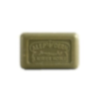 Klassisk Aleppotvål gjord av lagerblad och arganolja. Aleppotvål har man gjort i Syrien i mer än 2000 år. Tvålen är stämplad med arabisk text. Delar man tvålen visar sig en vackert smaragdgrön inre kärna, som är resultatet av lagringen.