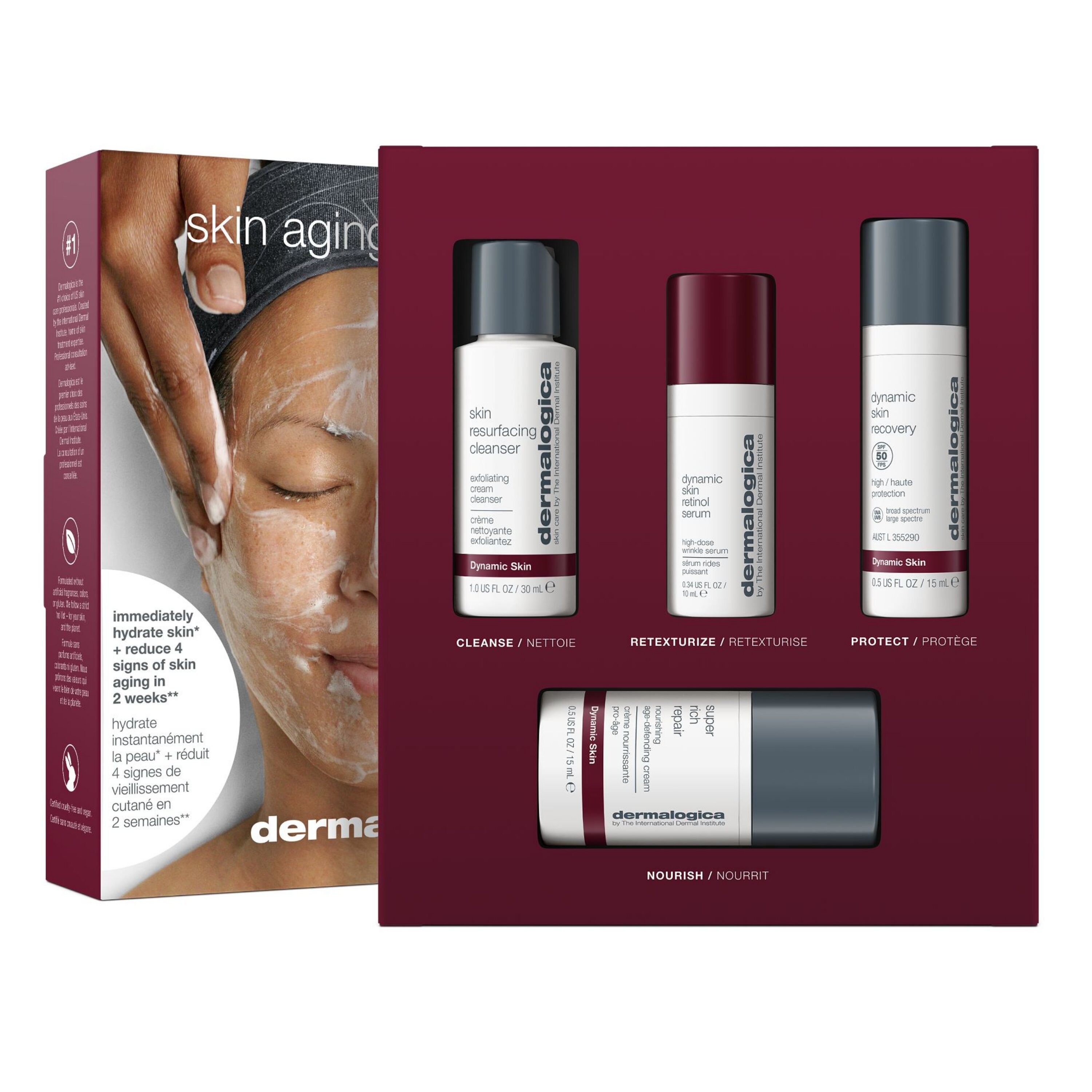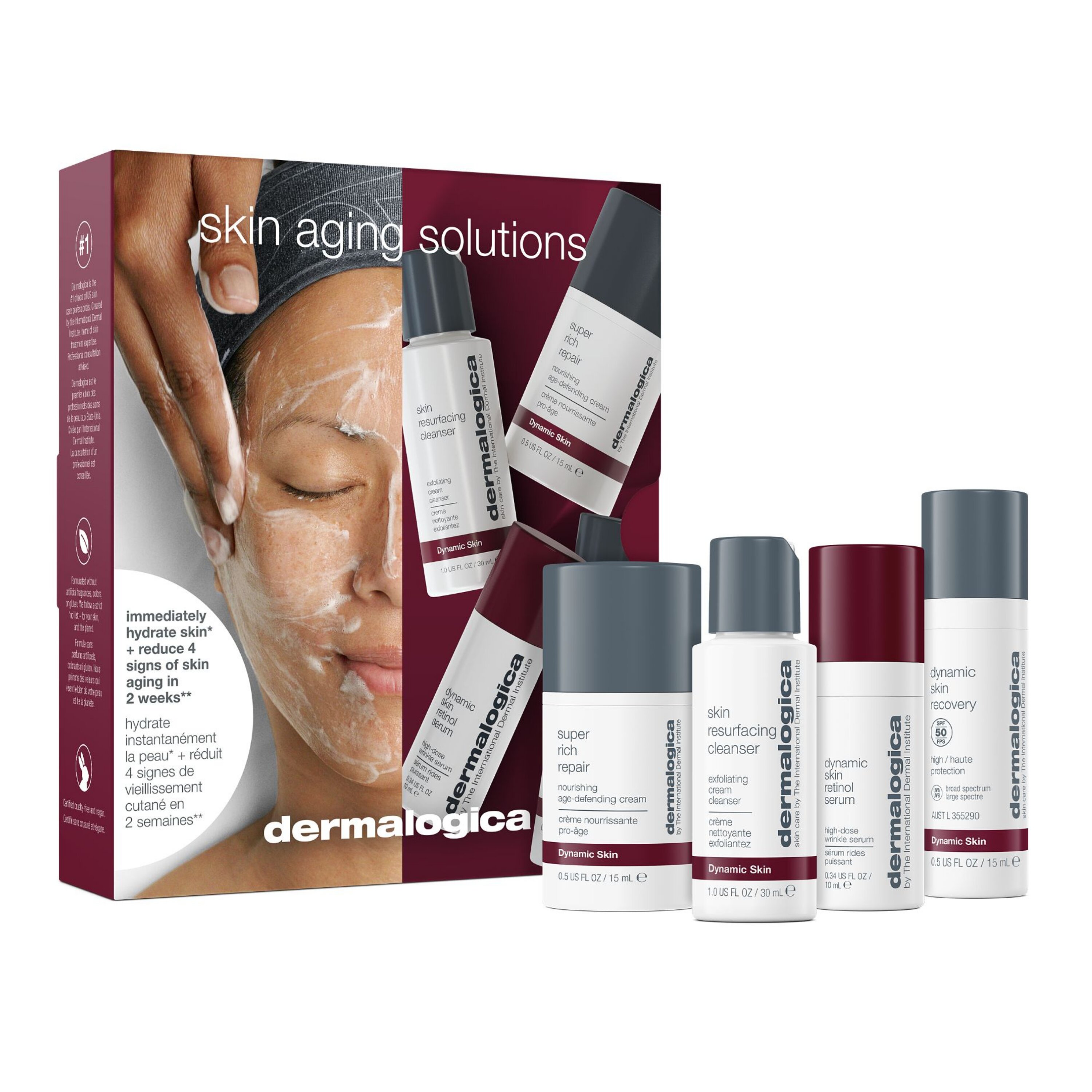 Ett kit med ansiktsprodukter som exfolierar, mjukgör och ger lyster. Skin Aging Solutions Kit innehåller följande produkter: