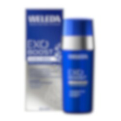 Dubbelt serum – dubbel effekt. Två-faser förenade i ett kraftfullt serum som motverkar ålderstecken. Upplev den perfekta synergin mellan natur och innovation med EXO BOOST double serum.