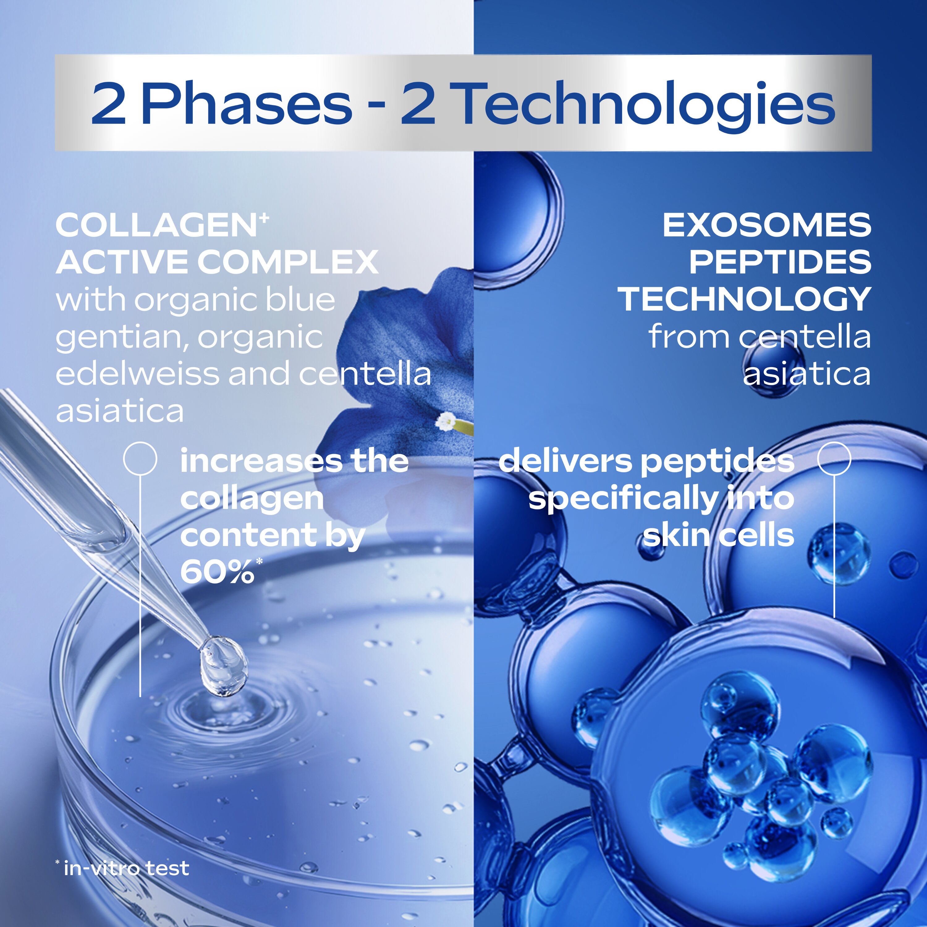 De växtbaserade exosomerna utvinns från Centella asiatica. Ett allt-i-ett Skin Youth Serum som minskar rynkor, återfuktar huden, ger mer spänst och definierade konturer. Formulan arbetar effektivt för att förbättra hudens struktur och återfå sin naturlig lyster. Förbättrar 8 tecken på hudens åldrande: Rynkor, fuktförlust, minskad volym, konturer, lyster, ojämnhet, elasticitet och spänst. Resultatet är en hud som känns slätare, fylligare och mer strålande – med förnyad kraft och naturlig lyster. Dermatologiskt testad, naturligt certifierad, vegansk. (*In-vitro-test med Collagen+ Active Complex)