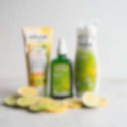 Med fuktgivande aloe vera, svalkande kokosolja och mjukgörande solrosolja i en lättabsorberad formula. Uppfriskande pigg naturlig doft med citrus, litsea cubeba och petit grain.