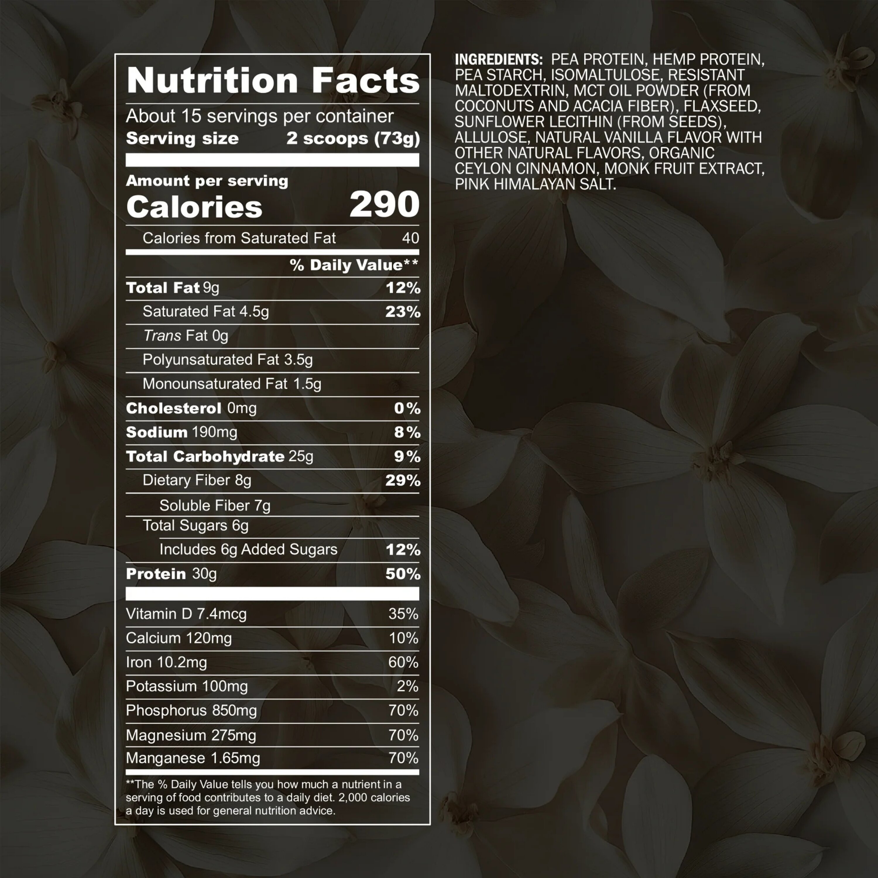 Detta vaniljsmakade proteinpulver är noggrant formulerat för att ge kroppen långsiktig energi, stöd för ämnesomsättning och bevarande av muskelmassa. Formulan balanserar proteiner, fibrer och mikronutrienter för att minimera blodsockerspikar och ge stabilt bränsle.