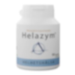 Helazym är ett enzymtillskott som innehåller hela 10 olika vegetabiliska matsmältningsenzymer. Här finns enzymer för nedbrytning av fett, protein och kolhydrater, bland annat cellulas som spjälkar fibrer och laktas som spjälkar laktos. Helazym innehåller även tre olika proteaser för nedbrytning av protein.