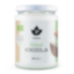 Den varsamma tillverkningsmetoden säkerställer också att de naturliga näringsämnena och aromerna i kokosoljan bevaras på bästa möjliga sätt. Den kallpressade jungfruoljan innehåller upp till 90% råa & mättade fettsyror. Använd som smör vid matlagning och bakning eller lägg till i kaffet. Lämpar sig också utmärkt för hudvård.
