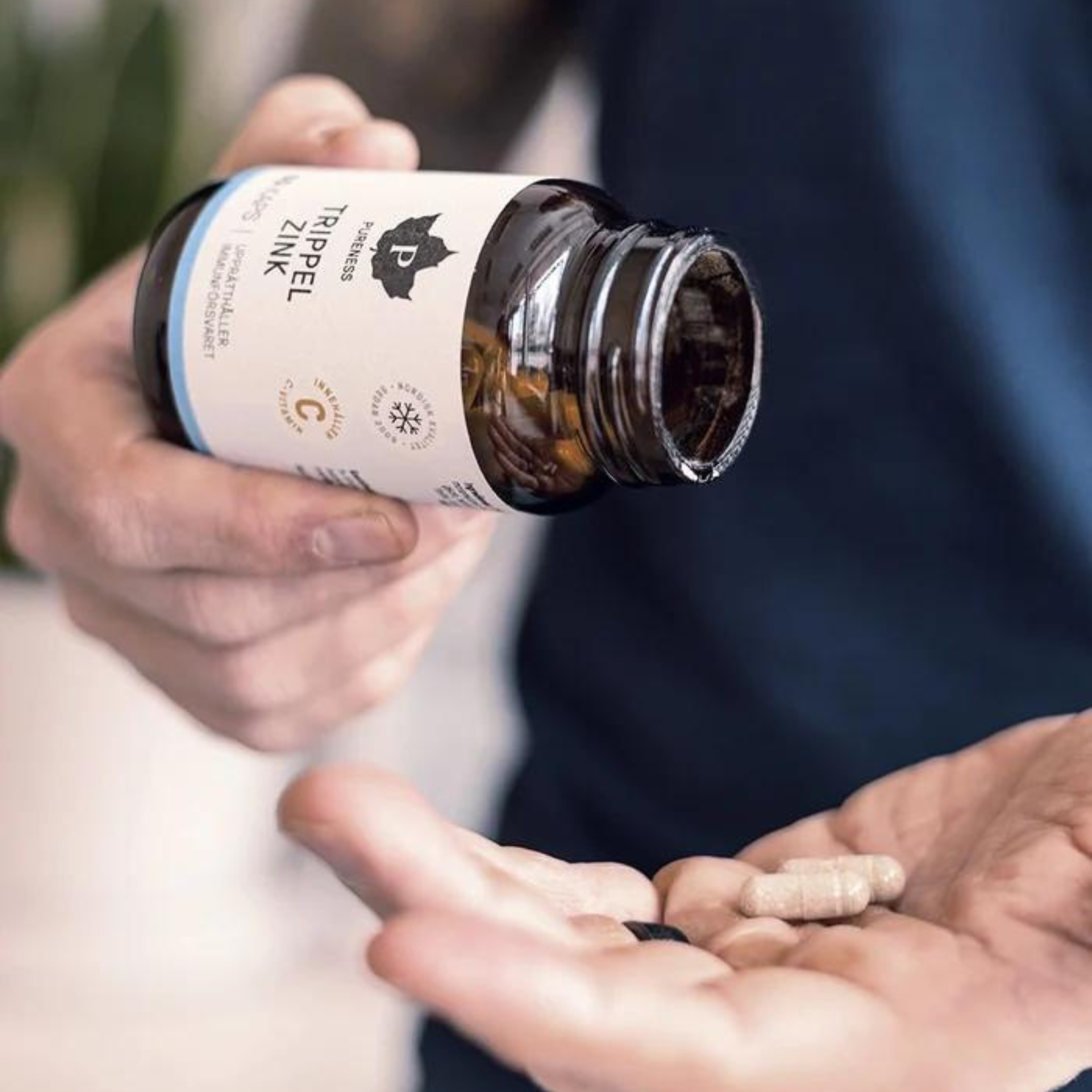Pureness Trippel Zink innehåller tre högkvalitativa former zink och är dessutom förstärkt med 75mg C-vitamin. De former av zink som ingår i denna formulering är zinkpikolinat, zinkbisglycinat och zinkmononetionin.