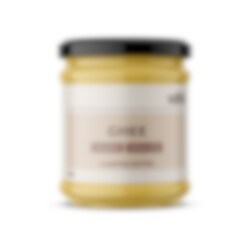 Detta smör görs från grädde från kor som växt upp ekologiskt med gräsbete och lever så som det är menat att de ska leva. Genom att göra ghee tar man bort i princip alla mjölkproteiner och laktos vilket gör att de som är känsliga för smör normalt kan äta detta. Det innehåller fortfarande spår av mjölkprotein så allergiker bör inte äta detta.