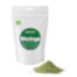Bladen från moringaträden som mals till ner till detta pulver är rika på vitamin E och järn, dessutom har moringa ett högt innehåll av protein.
