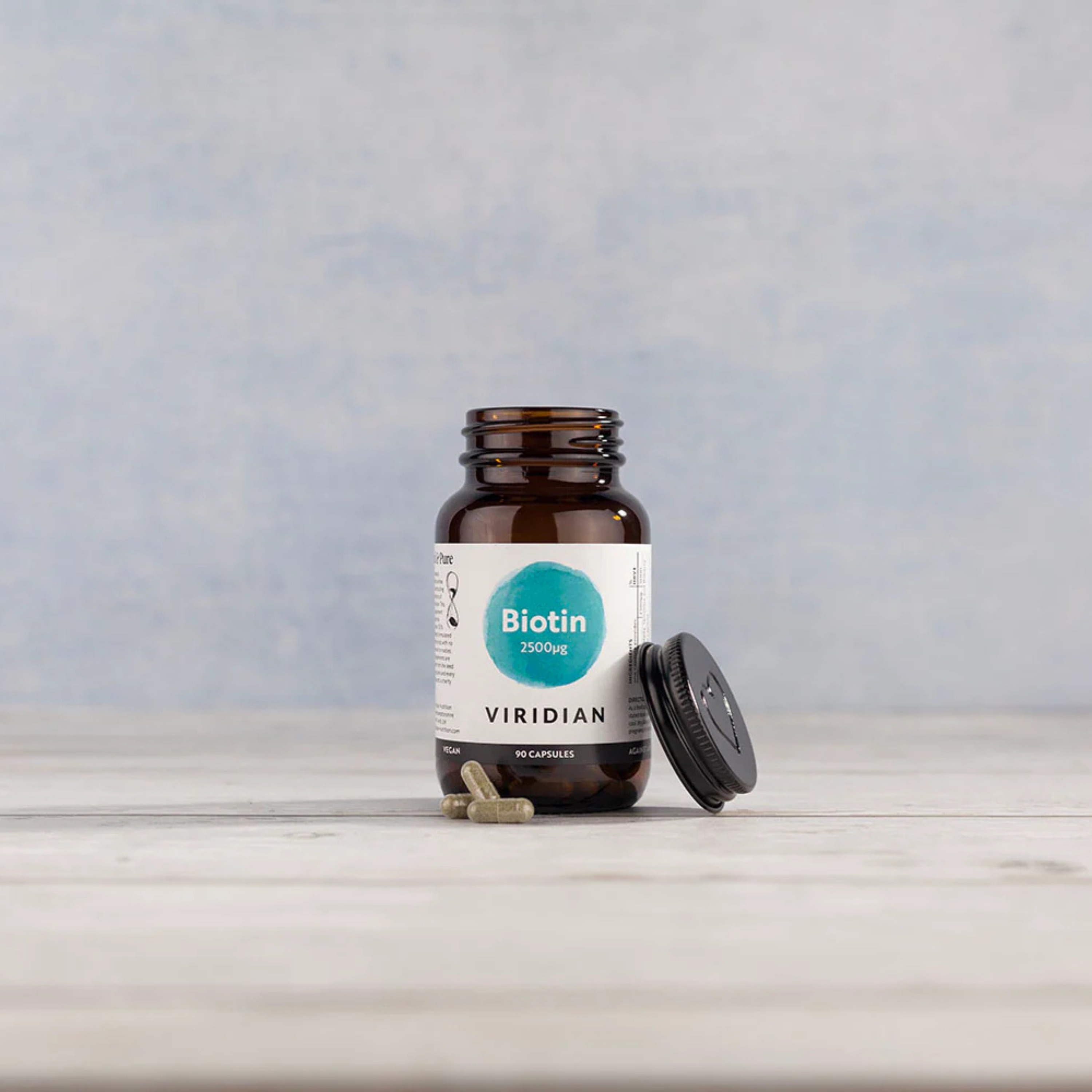 Biotin, även känt som vitamin B7, stödjer hårets, hudens och naglarnas normala hälsa. Denna högpotenta kapsel ger 2500 mcg biotin per dos. Ett utmärkt val för dig som vill stärka ditt yttre välbefinnande inifrån. Helt fri från onödiga tillsatser och lämplig för veganer.