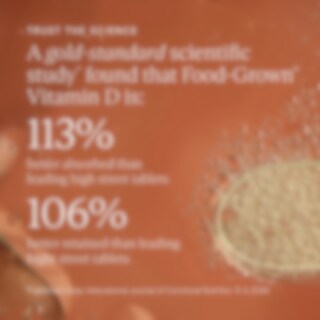 Perfekt under vinterhalvåret eller för personer med begränsad solexponering. Food-Grown®-teknologin gör produkten lättupptaglig och skonsam för magen. Bidrar även till normal celldelning och allmänt välmående.