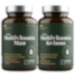 Kombinationspaket av Pure Multivitamin Man & Multivitamin Kvinna som är ett komplett näringstillskott med vitaminer, mineraler och växtextrakt anpassat för mannens respektive kvinnans behov. Innehållet är designat för optimalt upptag och effekt.