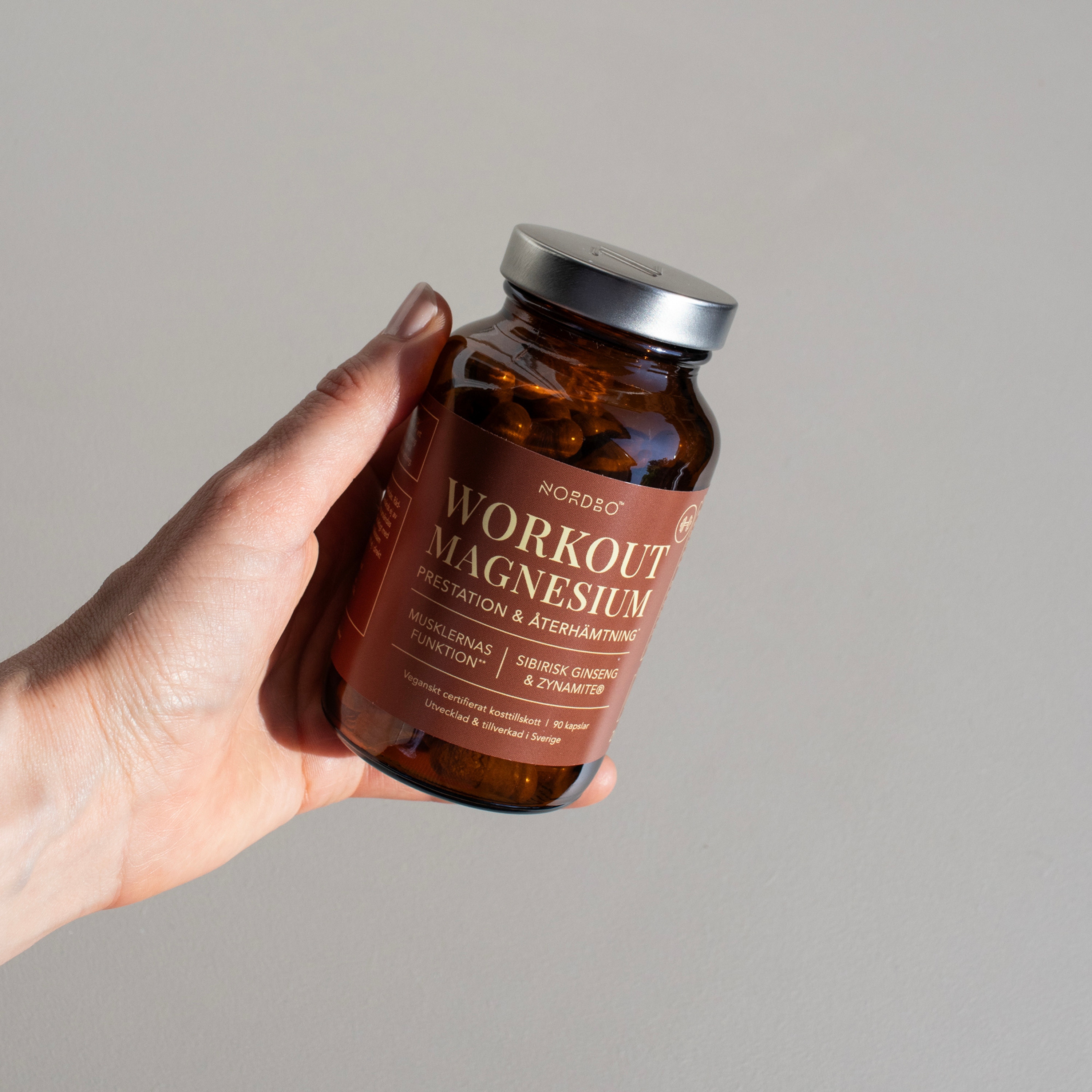 NORDBO Workout Magnesium är framtagen för fysisk prestation och återhämtning. Med 5 aktiva ingredienser: magnesiummalat, magnesiumbisglycinat, sibirisk ginseng, Zynamite® och Digezyme®.