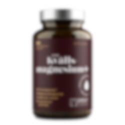 Magnesiumbisglycinat, kallas också magnesiumglycinat, är magnesium bundet till aminosyran glycin. Det är en mycket populär magnesiumform med hög biotillgänglighet, kroppen har lätt att känna igen och ta upp glycin som är en aminosyra naturligt förekommande i proteinrika livsmedel. Även glycin bidrar till flera viktiga funktioner i kroppen, bland annat som en lugnande signalsubstans. Tillsammans med magnesiumets avslappnande effekt är magnesiumbisglycinat därför bra att ta inför natten. Magnesiumbisglycinat är också en skonsam magnesiumform för magen.