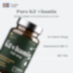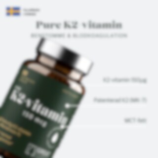 Pure K2-vitamin är en extra stark K-vitamin som innehåller 150 mikrogram K2-vitamin. Kompositionen är framställd för optimalt upptag och effekt, därför används den mest biotillgängliga formen av vitamin K2, menakinon-7 (MK-7).