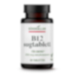 Närokällan B12 sugtablett i form av metylkobalamin. B12-Vitamin är viktigt för cellernas ämnesomsättning och bildandet av blodkroppar. Det är även viktigt för nervsystemets funktion.